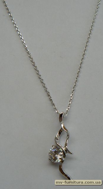 »  »  »  » Кулон цепочка серебро камень белый 2волны/1камень (22см)