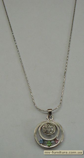 »  »  »  » Кулон цепочка серебро камень белый 3круга (22см)