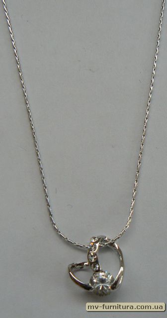 »  »  »  » Кулон цепочка серебро камень белый 5камней/сердце (22см)