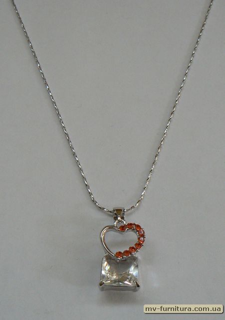 »  »  »  » Кулон цепочка серебро камень белый сердце/квадрат (22см)