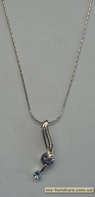 »  »  »  » Кулон цепочка серебро камень голубой 2камня/лист (22см)