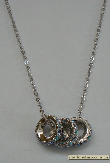 Кулон цепочка серебро камень голубой 3кольца  (22см)