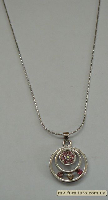 »  »  »  » Кулон цепочка серебро камень розовый 3круга (22см)