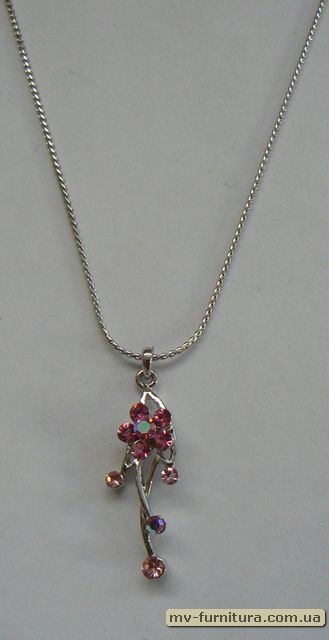 »  »  »  » Кулон цепочка серебро камень розовый цветок/салют (22см)