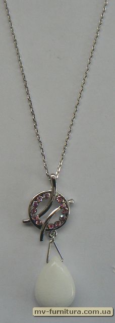 »  »  »  » Кулон цепочка серебро камень розовый круг/капля (22см)