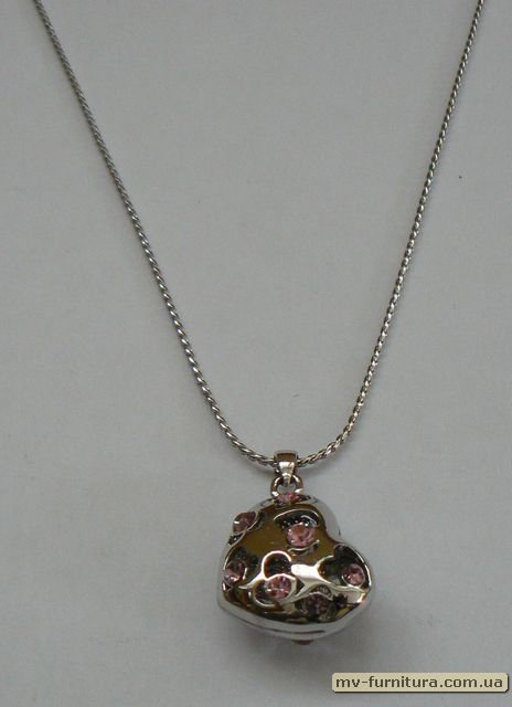 »  »  »  » Кулон цепочка серебро камень розовый объемное сердце (22см)