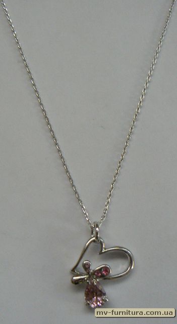 »  »  »  » Кулон цепочка серебро камень розовый сердце/колокольчик (22см)