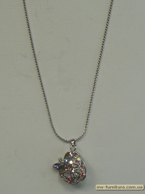 »  »  »  » Кулон цепочка серебро камень розовый яблоко (22см)