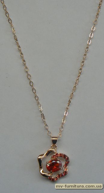 »  »  »  » Кулон цепочка золото камень красный рамка/цветок (22см)