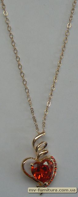 »  »  »  » Кулон цепочка золото камень красный сердце/спираль (22см)