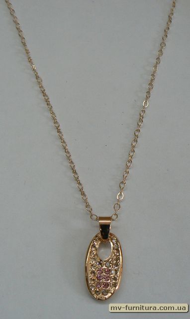 »  »  »  » Кулон цепочка золото камень розовый каменный овал (22см)