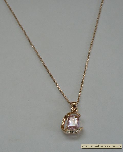 »  »  »  » Кулон цепочка золото камень розовый С/квадрат (22см)