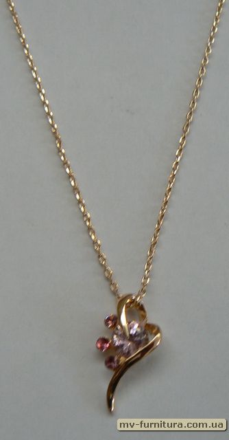 »  »  »  » Кулон цепочка золото камень розовый веер (22см)